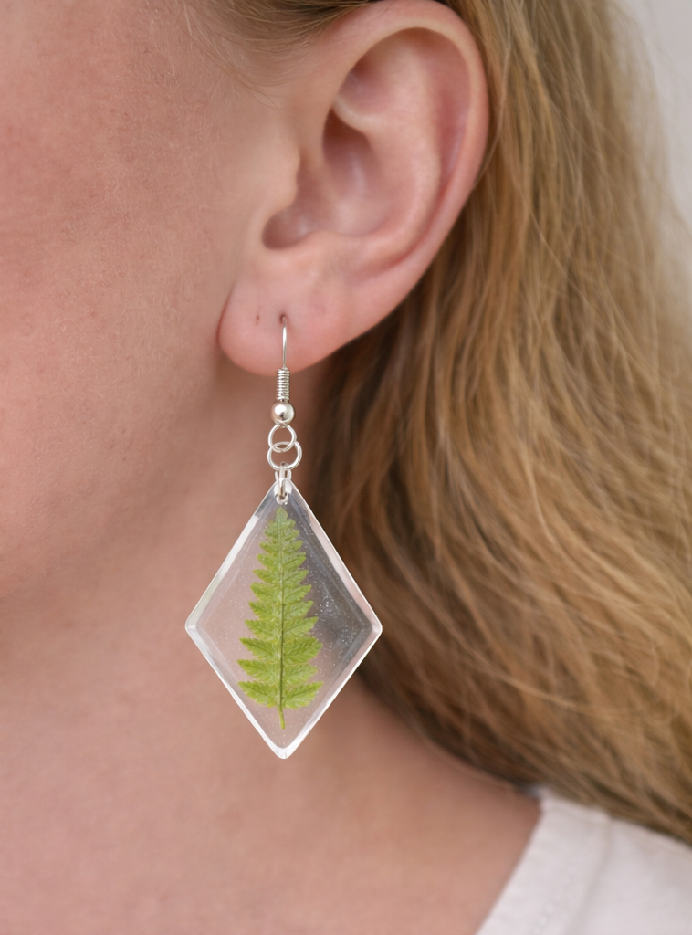 Succombez au charme de ces boucles d’oreilles artisanales uniques. Une délicate composition de fougère immortalisés dans une résine haute transparence pour sublimer leurs couleurs et détails naturels.