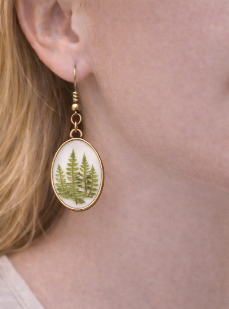 Évadez-vous avec nos boucles d'oreilles "Mini-forêts", une invitation à la rêverie. Ce bijou d'exception fige toute la richesse d'une balade en forêt dans une bulle de résine : un micro-paysage où chaque détail végétal raconte une histoire unique et sauvage.