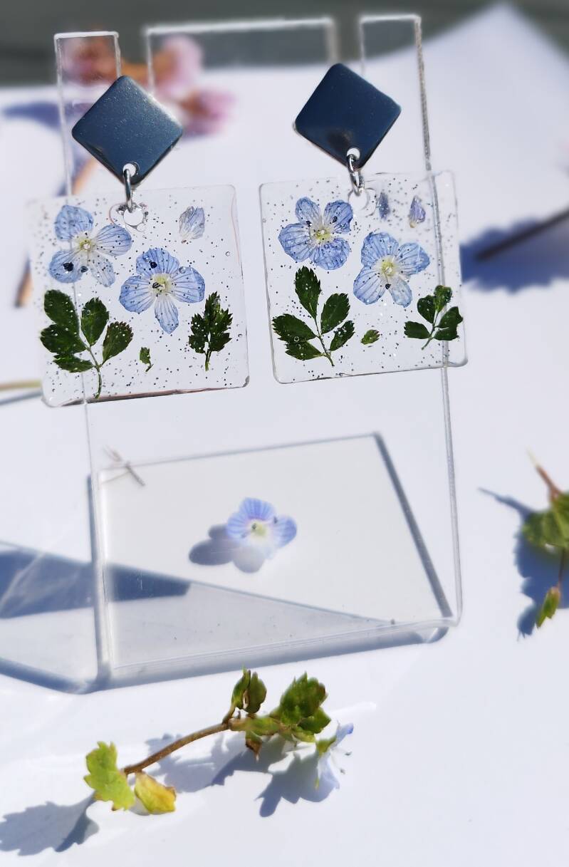 • Réalisé en résine avec inclusion de fleurs de Véronique, feuillages et pailettes